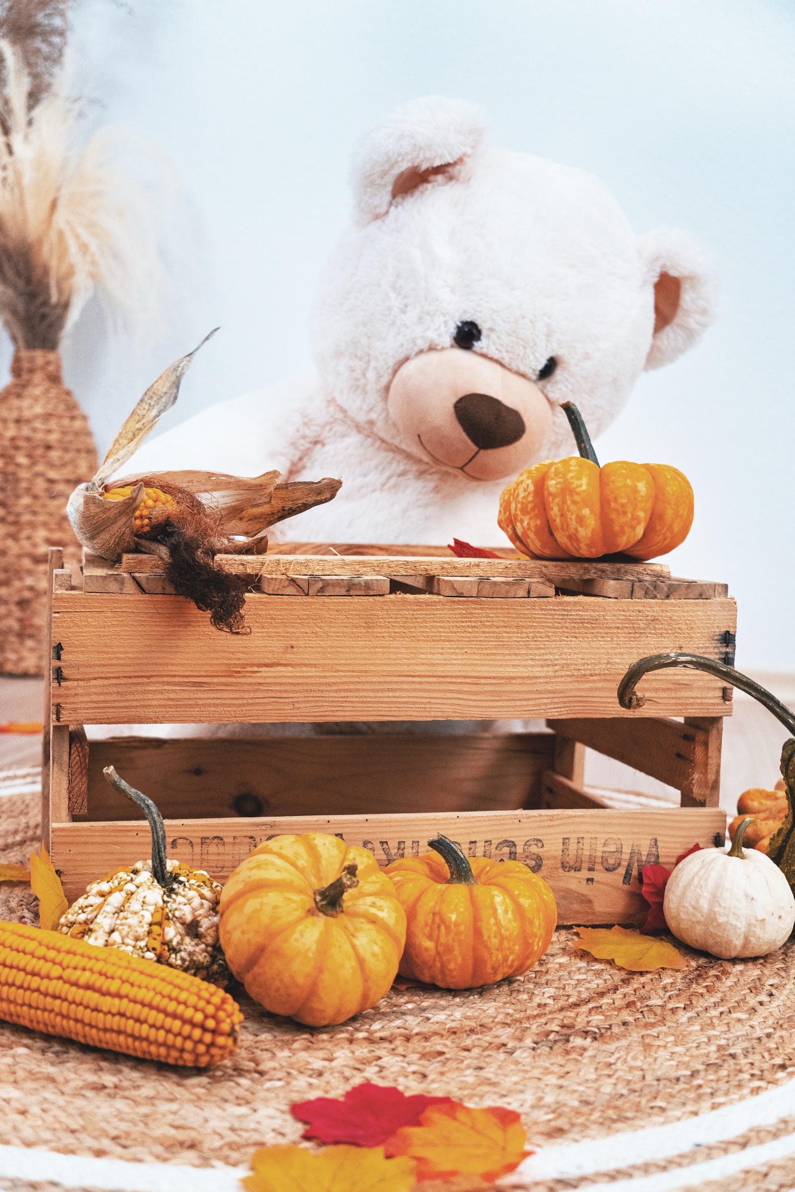 Wir helfen bei der Wahl des Sets, geben Tipps zur Kleidung (z. B. gedeckte Farben, passende Accessoires wie Mützen, Körbchen oder Kürbisse) und sagen euch, ob das Shooting im Studio, draußen oder an einem besonderen Ort stattfindet.